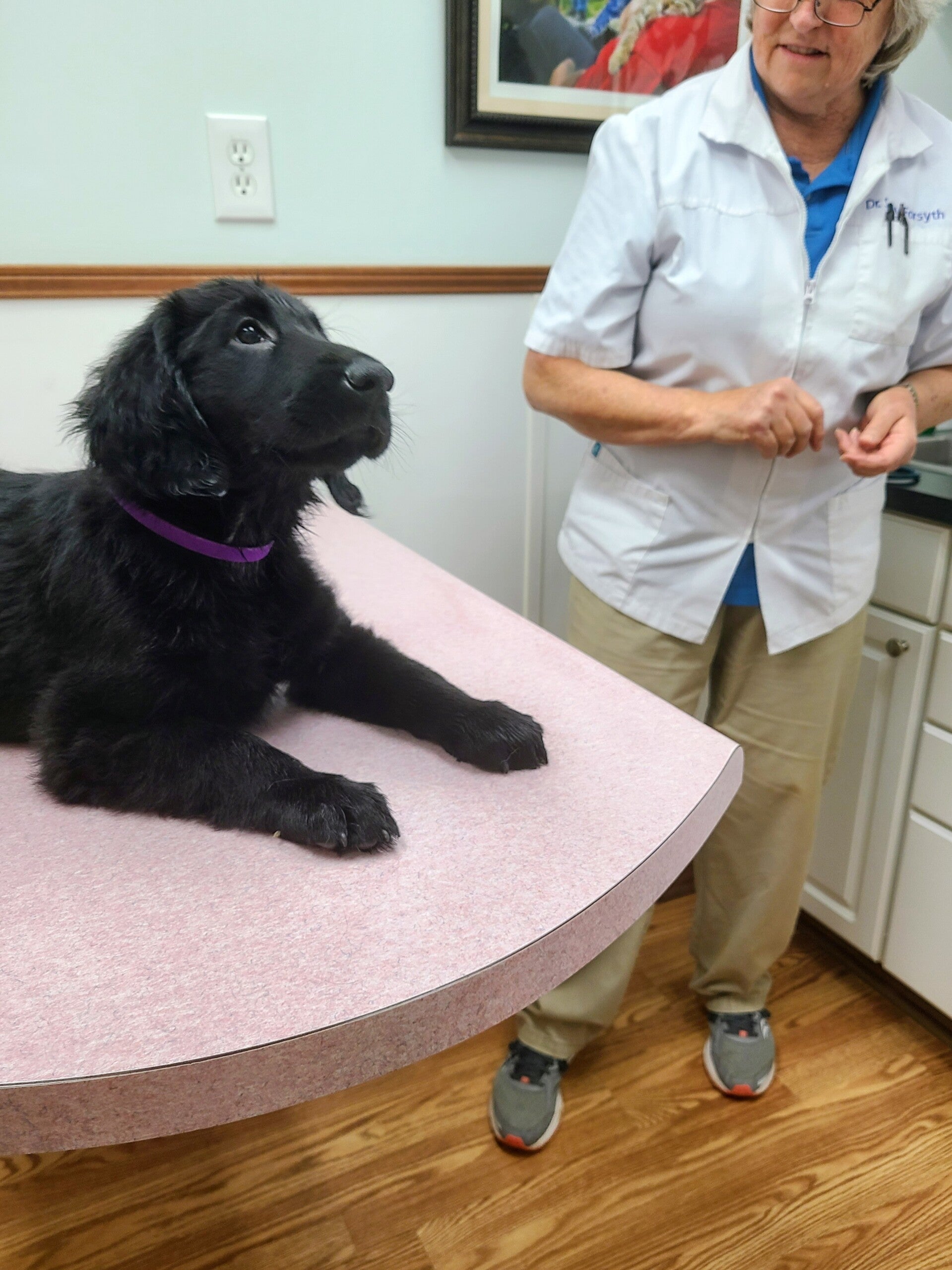 "We couldn't be happier with our Jubilee Flat-Coated Retriever. He's smart, loving, and truly a part of our family. The care and support from Dr. McClain were exceptional!"